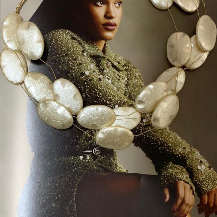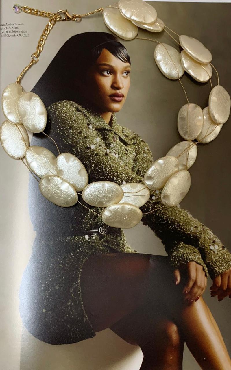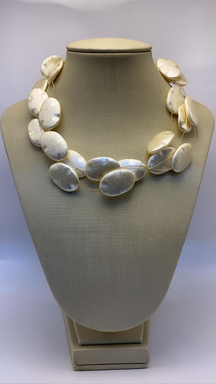 Colar pérola barroca dourado folheado.
